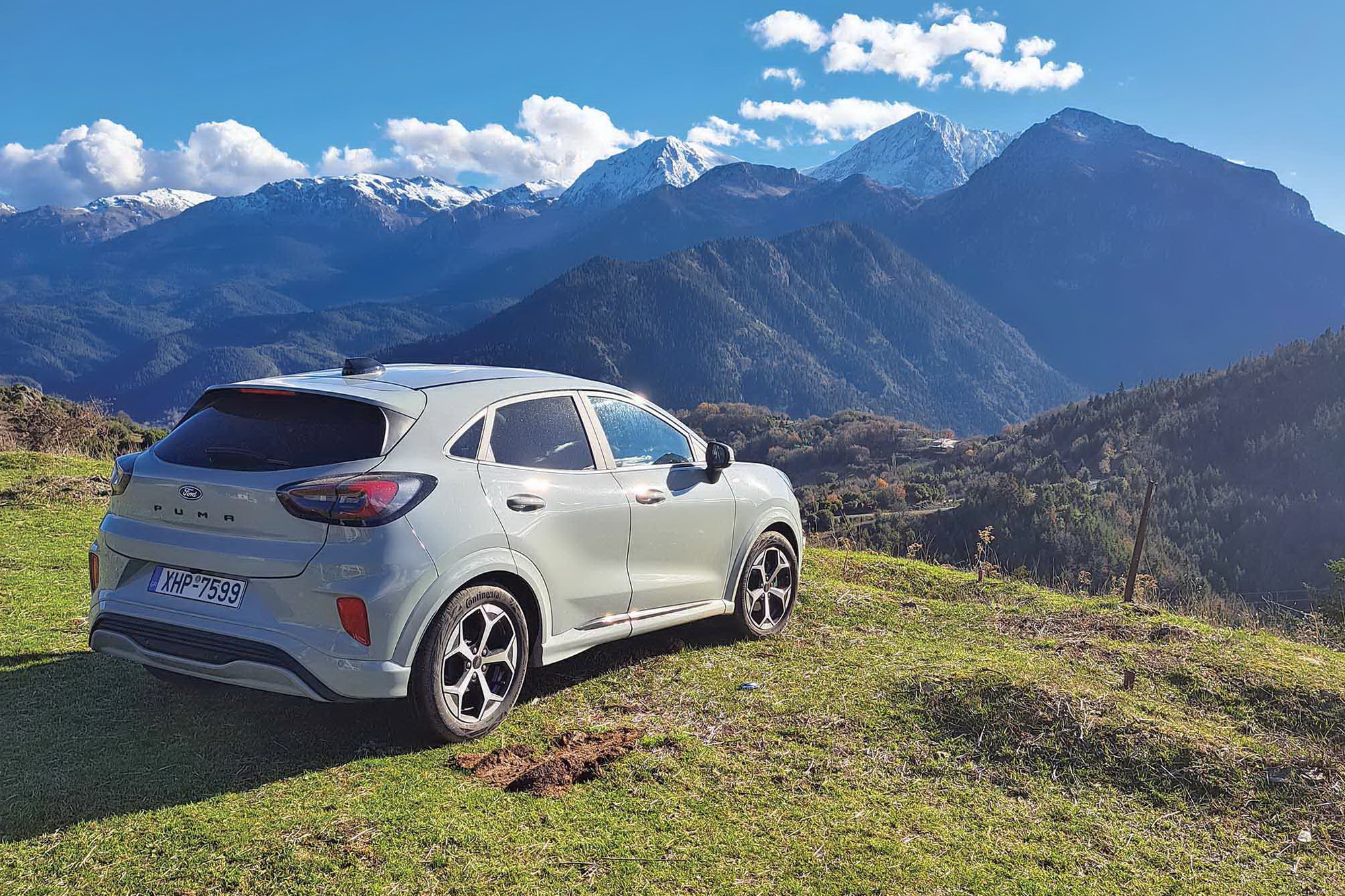 Mountain lion, λένε αλλιώς το αιλουροειδές της Αμερικής, που έδωσε το όνομά του στο Ford Puma. Οπότε, στα βουνά της Ρούμελης, το σπορ crossover του Μπλε Οβάλ ήταν στο στοιχείο του.