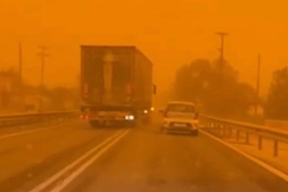 Επικίνδυνη οδήγηση φορτηγού στον ΒΟΑΚ εν μέσω αφρικανικής σκόνης: αλλεπάλληλες παράνομες προσπεράσεις με ελάχιστη ορατότητα φέρνουν τον κίνδυνο μετωπικής σύγκρουσης, προκαλώντας τρόμο στους οδηγούς και έντονη ανησυχία για την οδική ασφάλεια στην Κρήτη.