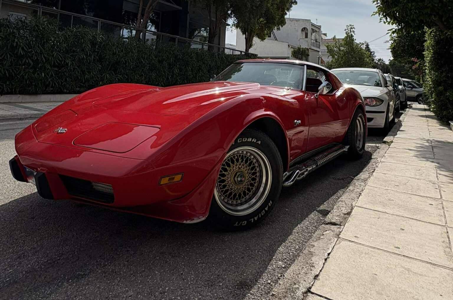 Ξελογιάζει κατακόκκινη Chevrolet Corvette C3 στα Πηγαδάκια