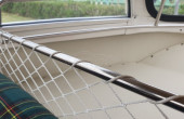 Στο εσωτερικό, η αναπαλαίωση έχει γίνει με σεβασμό στην εποχή, χρησιμοποιώντας καρό ύφασμα στα καθίσματα, που προσδίδει μια ρετρό εσάνς. Με μόλις 52.815 χιλιόμετρα στο κοντέρ και έχοντας διανύσει μόλις 75 χιλιόμετρα μετά την ανακατασκευή, το αυτοκίνητο βρίσκεται σε κατάσταση βιτρίνας.