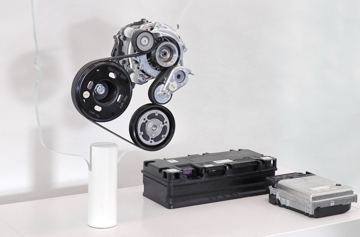 Η VW δεν μπαίνει σε πολλές λεπτομέρειες, αλλά λέει ότι ο θερμικός κινητήρας (ICE) θα συνδυάζεται με μια μίζα-γεννήτρια των 48V και μια μπαταρία ιόντων λιθίου των 48V. H ενιαία μίζα-γεννήτρια συνδέεται με τον κινητήρα μέσω τροχαλιών και ιμάντα. Θα τον βάζει μπροστά και θα τον υποβοηθεί με επιπλέον ροπή όταν χρειάζεται, αντλώντας ενέργεια από την μπαταρία, την οποία θα φορτίζει όταν το αυτοκίνητο επιβραδύνει. Επιπλέον, θα σβήνει εντελώς τον θερμικό κινητήρα όταν το επιτρέπουν οι συνθήκες –π.χ. στις κατηφόρες– εξοικονομώντας έως και 0,3 λίτρα καυσίμου ανά 100 χιλιόμετρα.