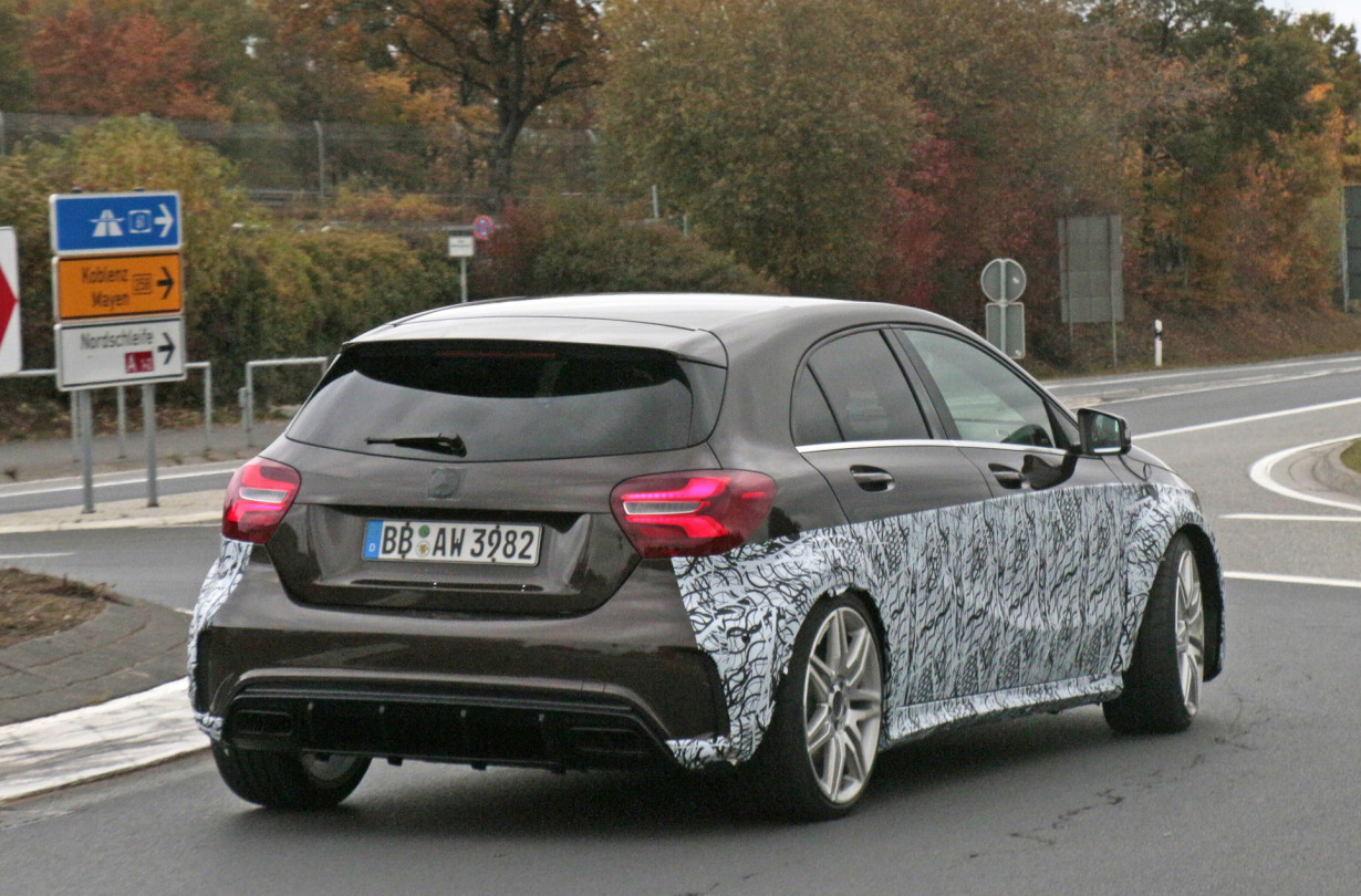 Στα αυτοκίνητα που φωτογραφήθηκαν από τους κατασκόπους, αλλά των οποίων δεν έχουμε τα δικαιώματα δημοσίευσης, βλέπουμε ότι οι οπτικές διαφορές μεταξύ της 35άρας και της 45άρας AMG A-Class είναι μικρές. Ωστόσο, το σινιάλο για την απόδοση που κρύβεται κάτω από το καπό μαρτυρούν οι μπούκες της εξάτμισης. Η Α 45 είναι 4μπουκη, ενώ η Α 35 με δύο μπούκες. Πρόκειται για ένα διαφοροποιό σύστημα, παρόμοιο με αυτό που ίσχυσε στη C 43 και επαναλήφθηκε πρόσφατα στις CLS 53 και E 53.