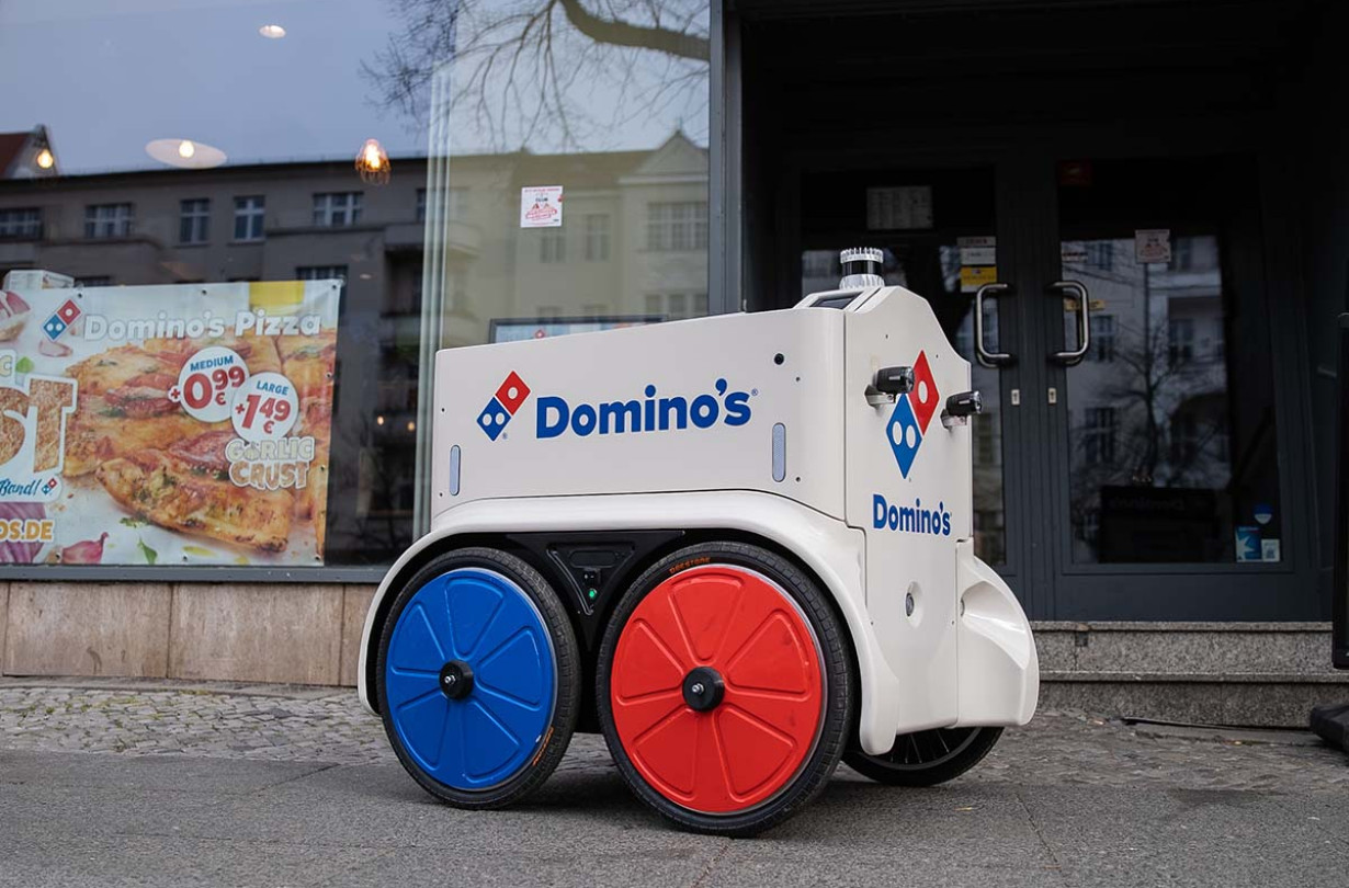 Στο πλαίσιο ενός πιλοτικού προγράμματος η εταιρεία μελετά το κατά πόσον η χρήση τέτοιων μηχανών μπορεί να φανεί χρήσιμη στις διανομές φαγητού. Το ρομπότ κουβαλάει τις πίτσες κυριολεκτικά… μέσα του, δηλαδή σε ένα ντουλάπι. Χάρη σε τέσσερις αισθητήρες και πολλές κάμερες έχει «όραση» 360 μοιρών, εντοπίζοντας εμπόδια μπροστά ή πίσω, οπότε και επιβραδύνει ή σταματά τελείως.