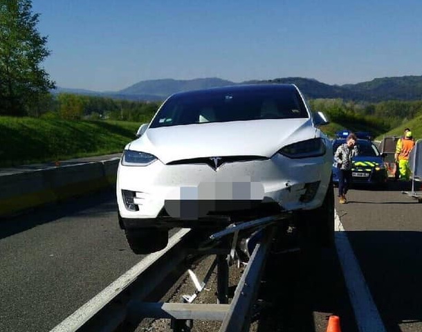 Η οδηγός ενός Model X κατάφερε να απογειώσει το βαρύ SUV με τα «φτερά γλάρου», κουρνιάζοντάς το πάνω στην μπαριέρα.