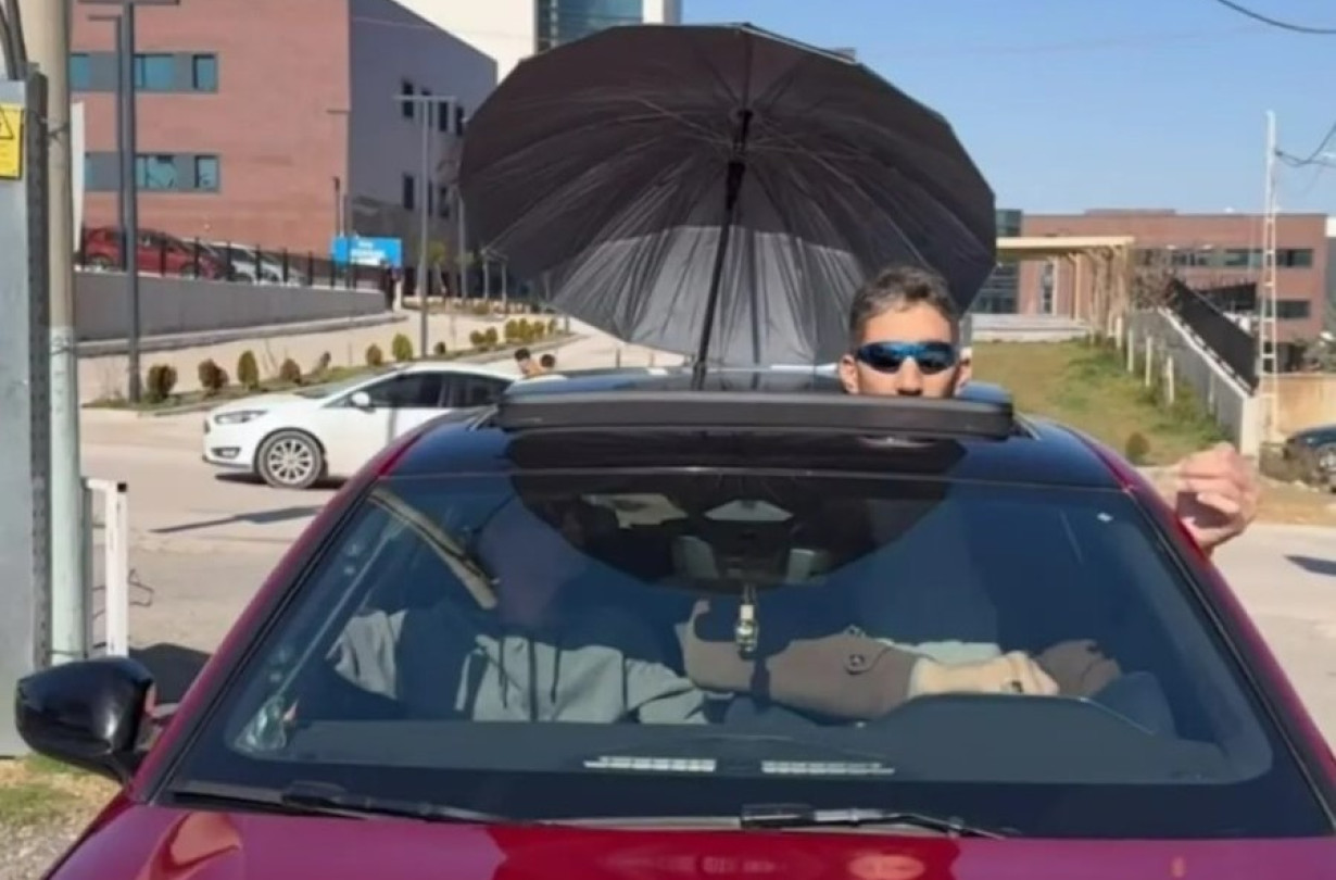 Δεν προσπαθεί να βρει αρκετά ψηλό αυτοκίνητο, γιατί έτσι κι αλλιώς, σε κανένα δεν νιώθει άνετα. Πλέον βολεύεται και με πιο χαμηλά, αρκεί να έχουν ανοιγόμενη ηλιοροφή. Σε αυτή την περίπτωση, απλώς βγάζει το κεφάλι του έξω και δεν τον περιορίζει τίποτα.