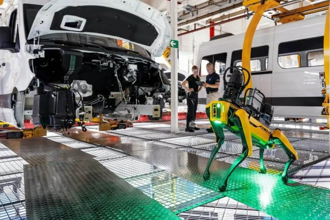 Τα ανθρωποειδή ρομπότ αποτελούν μέρος ενός δοκιμαστικού προγράμματος, ενώ ένας 4ποδος ρομποτικός σκύλος από τη Boston Dynamics έχει ενταχθεί στην ομάδα του εργοστασίου που κατασκευάζει βαν στο Düsseldorf.