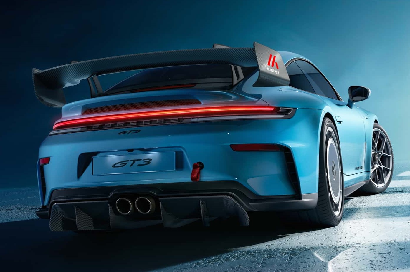 Η Manthey προσθέτει μεταλλικά σωληνάκια φρένων και coilover ανάρτηση. Η τεράστια πίσω αεροτομή είναι φαρδύτερη και πιο περίτεχνη, ενώ ο διαχύτης έχει μεγαλώσει.