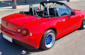 Είναι μοντέλο του 1994 και δεν γνωρίζουμε αν οι προβολείς της Supra είναι γνήσια ανταλλακτικά ή ιμιτασιόν. Μικρή σημασία έχει άλλωστε. Φαίνονται τεράστια και παράταιρα στο μικροκαμωμένο αμάξωμα του Mazda MX-5 που το κοσμούσαν οι αναδιπλώμενοι προβολείς, τόσο χαρακτηριστική μόδα για τη συγκεκριμένη δεκαετία.