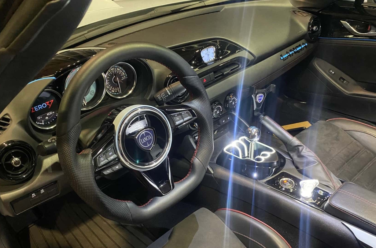 Η τεράστια ποσότητα των λογότυπων της Lancia κι η προσοχή στη λεπτομέρεια είναι αξιοσημείωτες. Ακόμα και το μπροστινό παρμπρίζ δεν έχει πλέον σήμανση Mazda αλλά της ιταλικής φίρμας.
