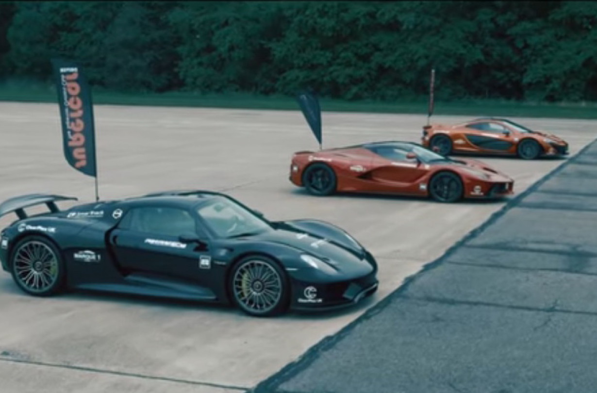 Οι συνάδελφοι από το κανάλι του YouTube «The Supercardriver» μάζεψαν λοιπόν τις Ferrari LaFerrari, McLaren P1 και Porsche 918 Spyder στο Αεροδρόμιο του Bruntingthorpe στη Βρετανία για ένα drag race υψηλής ταχύτητας. Κάθε αυτοκίνητο ήταν εξοπλισμένο με το δικό του Vbox, που ήταν σεταρισμένο να ξεκινά την εγγραφή μόλις το αυτοκίνητο περνούσε τη γραμμή εκκίνησης. Οπότε δεν επηρέαζε σε τίποτα ένα jump start.