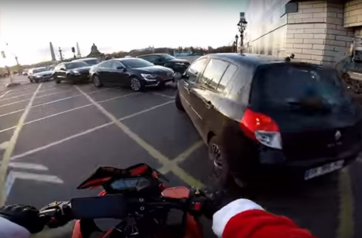 Στην περίπτωσή μας, κάτω από την κόκκινη στολή και τα άσπρα γένια του Αϊ-Βασίλη κρυβόταν ο μοτοσικλετιστής και YouTuber, Chris RS. Άγιες Μέρες είναι κι ο Chris είχε ντυθεί στο πνεύμα των ημερών και είχε βγει βόλτα με τη μηχανή του στους δρόμους του Παρισιού για να χαιρετάει τον κόσμο και να διασκεδάζει τα παιδάκια.