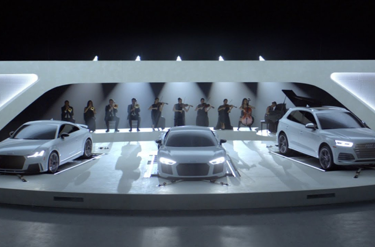 Μαζί με το πιάνο, την άρπα, τα βιολιά και τα πνευστά, τα R8 V10 Plus, TT RS και SQ5 ηχογραφούνται ενώ παίζουν το “Where Everybody Knows Your Name” (από τη σειρά Cheers), το “Love Is All Around” (από το The Mary Tyler Moore Show), και το πασίγνωστο θέμα του Star Trek.