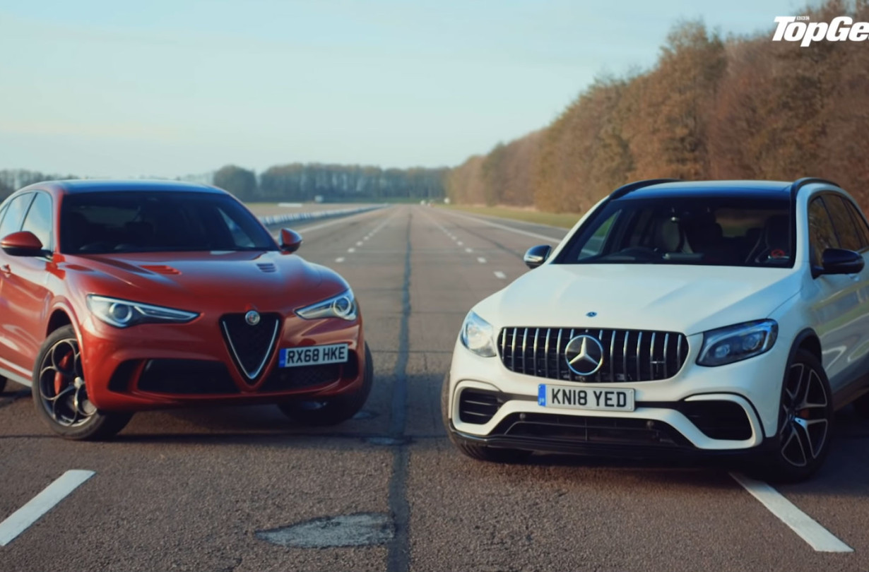 Το βρετανικό Top Gear οργάνωσε ένα drag race μεταξύ Alfa Romeo Stelvio Quadrifoglio και Mercedes-AMG GLC 63 S, δύο μοντέλα με παραπλήσιο χαρακτήρα και τεχνικά χαρακτηριστικά.