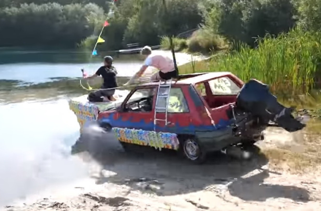 Η συγκεκριμένη είχε ως βάση ένα παλιό και σάπιο Renault 5 που κάποιος παραχώρησε ευγενώς στον Milo και τους φίλους του. Σε πρώτη φάση, αυτοί το ζύγισαν –με ζυγαριά μπάνιου!– και υπολόγισαν πόσα άδεια κουτιά tetrapack από χυμό θα χρειάζονταν για να επιπλεύσει το αυτοκίνητο μαζί με τους επιβάτες του.
