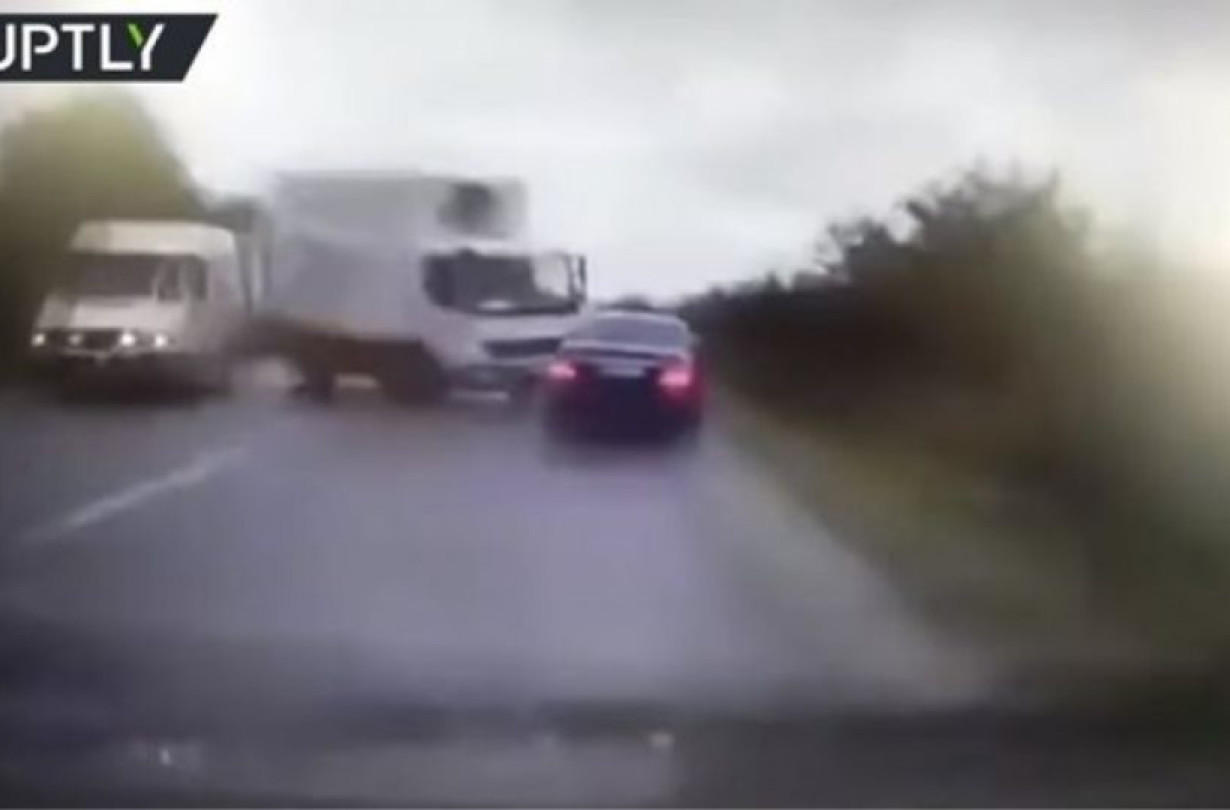 Στο βίντεο που δόθηκε στη δημοσιότητα φαίνεται η στιγμή που φορτηγό πέφτει πάνω στην αυτοκινητοπομπή του Μολδαβού προέδρου, Igor Dodon.