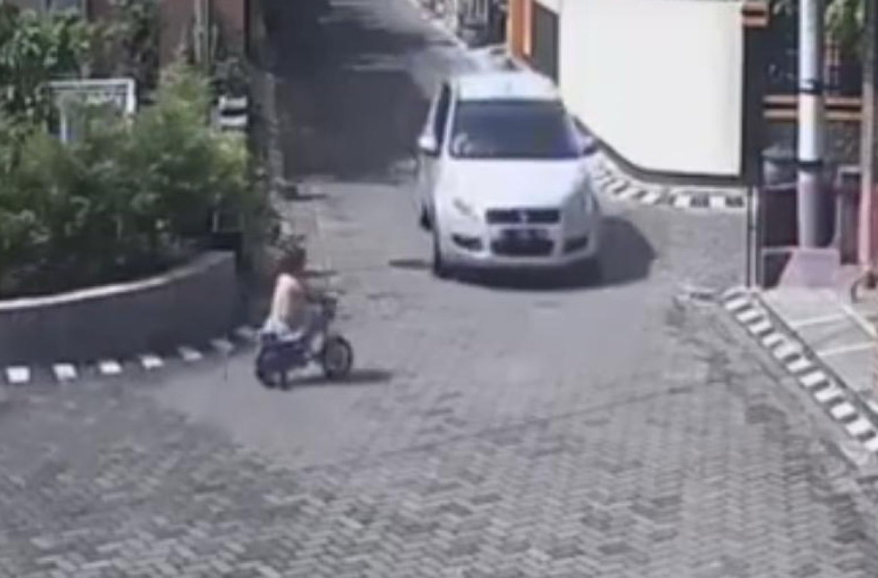 Το video είναι από κάπου στην Ινδία και δείχνει ένα μικρό κοριτσάκι με το ποδήλατό του να πετάγεται εμπρός σε ένα αυτοκίνητο, σε σημείο όπου η οδηγός του αυτοκινήτου δεν μπορούσε να το δει.