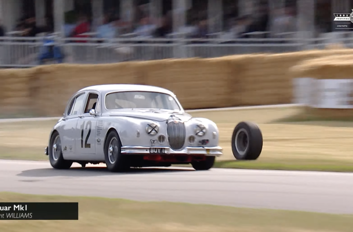 Απίστευτο ατύχημα στο Goodwood. Στη διάρκεια της περίφημης ανάβασης του φεστιβάλ μια Jaguar Mk1 ξεκίνησε εντυπωσιακά, αλλά στην πορεία κάτι στράβωσε.