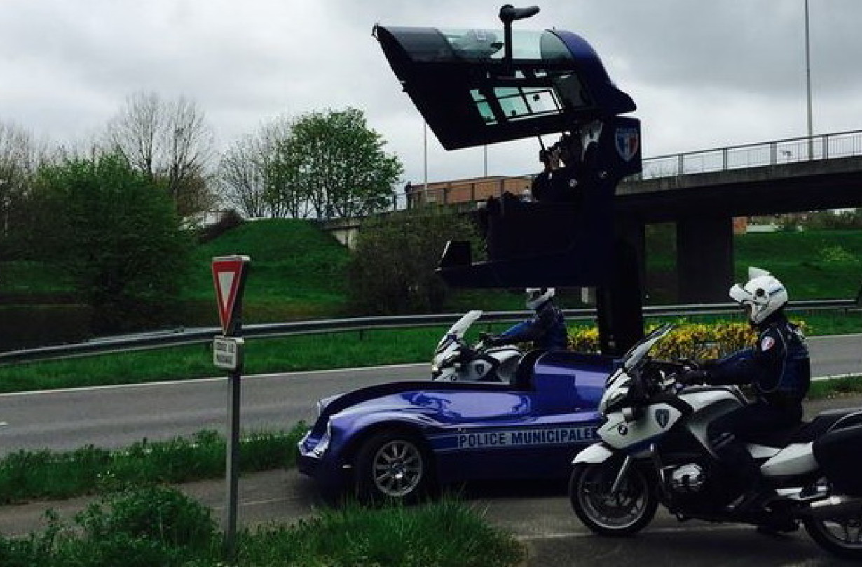 Η Αστυνομία της περιοχής του Evry, στα νότια του Παρισιού, δοκιμάζει ένα όχημα με ειδική ανυψούμενη καμπίνα για πιο εύκολο έλεγχο κάποιων παραβάσεων.