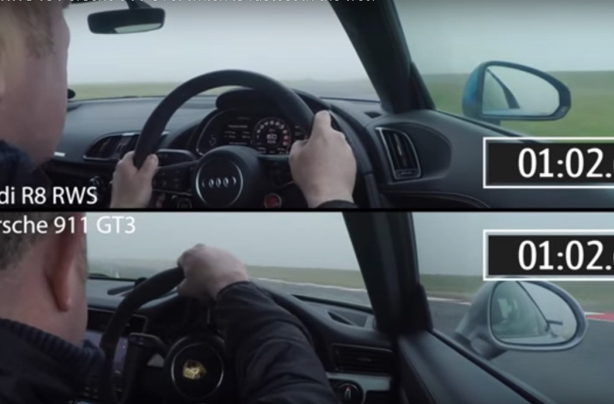 Audi R8 RWS εναντίον Porsche 911 GT3 σε βρεγμένη πίστα! [video]