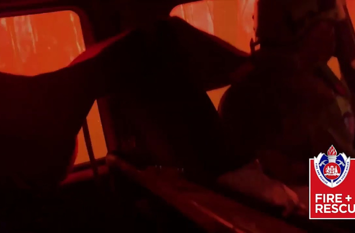 Πυροσβέστες από τη Νέα Νότια Ουαλία της Αυστραλίας δημοσίευσαν ένα βίντεο που απεικονίζει το πυροσβεστικό τους όχημα να περνά κυριολεκτικά μέσα από τη φωτιά.