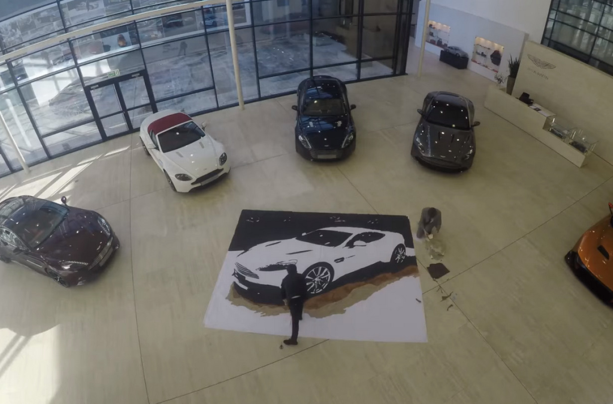 Ωστόσο, η αγγλική εταιρεία ανέθεσε σε μια ομάδα ειδικών να δημιουργήσει ένα δερμάτινο έκθεμα για το αίθριο των κεντρικών της εγκαταστάσεων στο Γκέιντον. Κάπως έτσι δημιουργήθηκε σε έναν καμβά η δερμάτινη φιγούρα μιας Vanquish, από την οποία προφανώς λείπει ο 6λιτρος V12 με τον ονειρεμένο ήχο.