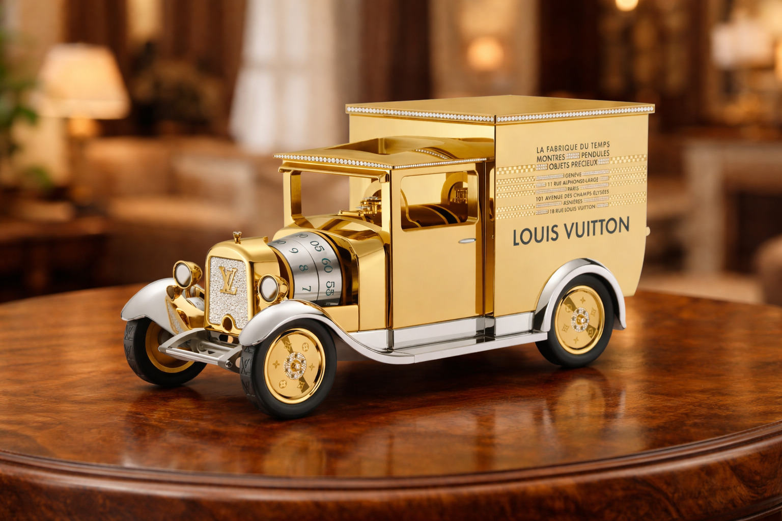 Στην περίπτωση όμως της Louis Vuitton, το αντικείμενο με την ονομασία Camionnette Edition Limitée είναι καθαρά διακοσμητικό. Πρόκειται ουσιαστικά για ένα επιτραπέζιο ρολόι σε μορφή πολυτελούς καμιονέτας, με τιμή που αγγίζει τις 650.000 ευρώ.