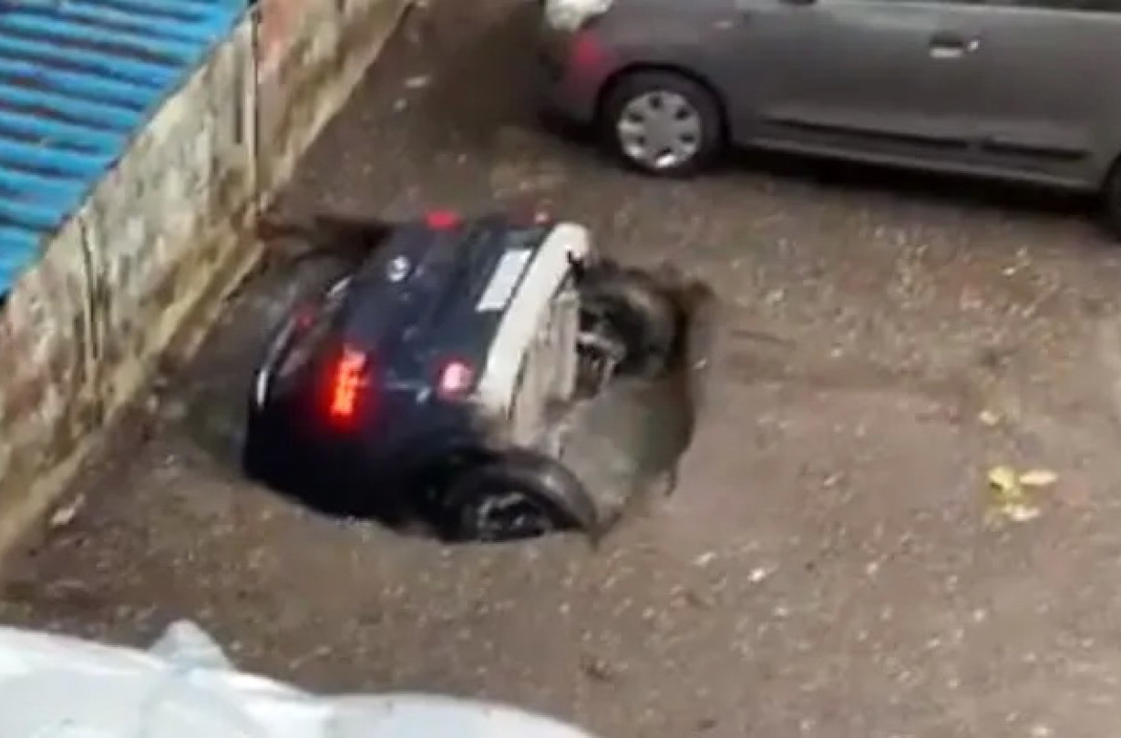 Ένα βίντεο από τη Βομβάη της Ινδίας δείχνει ένα Hyundai Venue να εξαφανίζεται μέσα σε δευτερόλεπτα μέσα σε μια τεράστια τρύπα που άνοιξε στα καλά καθούμενα εκεί που ήταν σταθμευμένο.