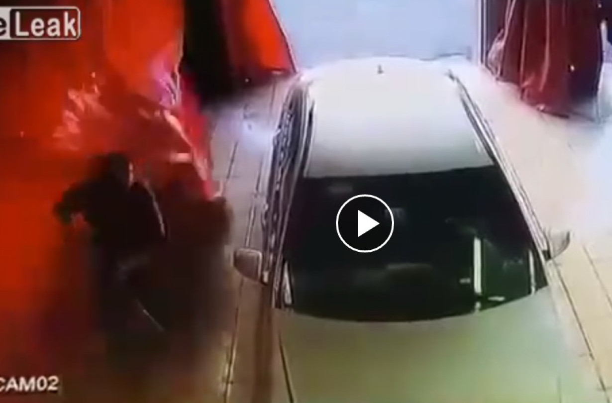 Μετά τη σύγκρουσή του με μια Corolla(;), το Daewoo Nexia του video παρεκτράπηκε και μπήκε με ταχύτητα σε παρακείμενο πλυντήριο αυτοκινήτων. Ο εργαζόμενος στο πρώτο διαμέρισμα, που πήγαινε να βάλει την ηλεκτρική σκούπα στην πρίζα, το είδε να έρχεται και κατάφερε να το αποφύγει την τελευταία στιγμή χάρη στα γρήγορα ανακλαστικά του.