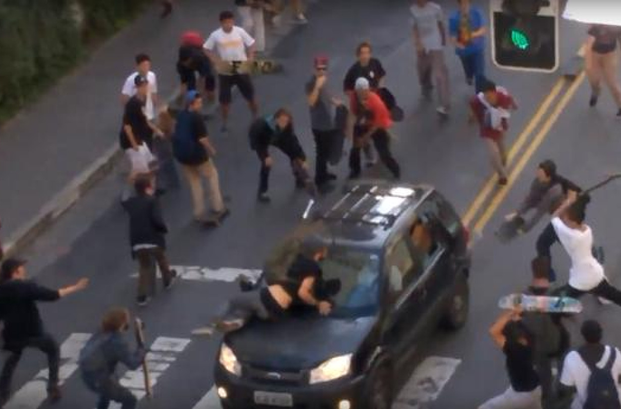 Άνδρας οδηγός παρασέρνει με το αυτοκίνητό του δεκάδες skaters κατά τη διάρκεια skateday στο São Paulo, στη Βραζιλία.