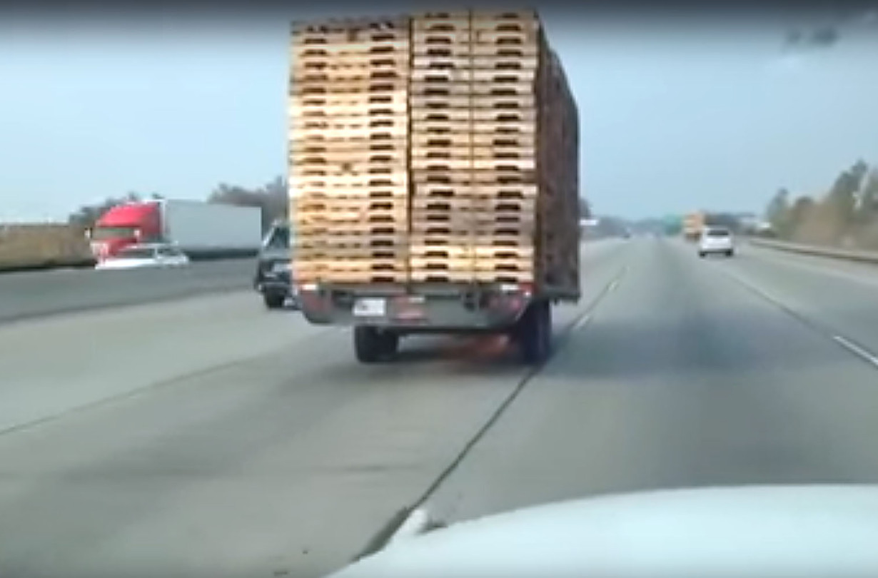 Ωστόσο, αξίζει να σημειώσουμε πόσο ευθεία και ακλόνητα προχωρά το ρυμουλκούμενο μόνο του. Το στενό πλάτος της λωρίδας δεν φαίνεται να το επηρεάζει καθόλου, ακολουθώντας πιστά τη χάραξη και επιβραδύνοντας με το «βοηθητικό σύστημα πέδησης». Ξύνοντας δηλαδή με το κοτσαδόρο του την άσφαλτο. Ευτυχώς βέβαια που δεν συνάντησε κάποια λακκούβα, να κάνει κανένα «έντο» και να πεταχθούν οι παλέτες προς όλες τις κατευθύνσεις και να γίνουν φωτιά και μπούρμπερη όλα, αποκτώντας ταυτόχρονα το video αυτό άλλη θεαματική αξία.