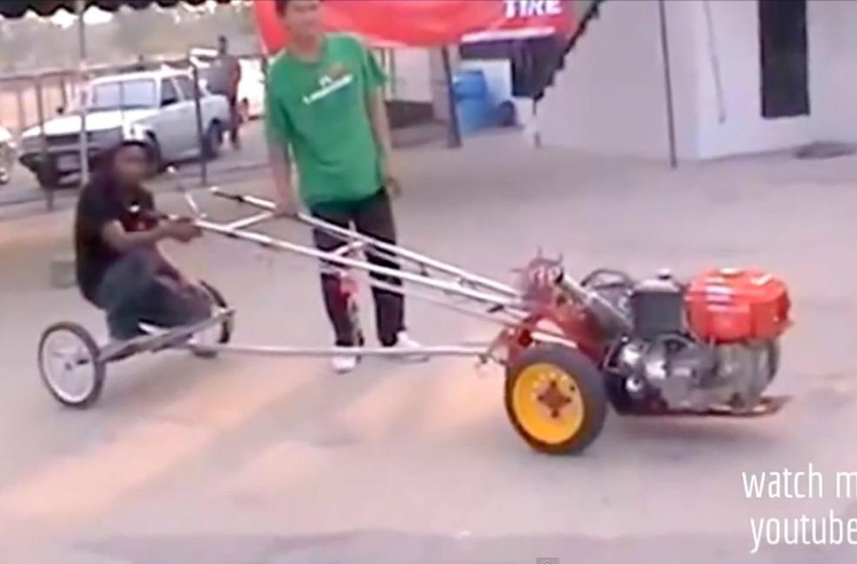 Στην Ταϋλάνδη όμως φαίνεται ότι η ασφάλεια περνάει σε δεύτερη μοίρα, μιας και επέτρεψαν σε ένα αυτοσχέδιο τρακτεράκι με κινητήρα Kubota να τρέξει σε αγώνα dragster.