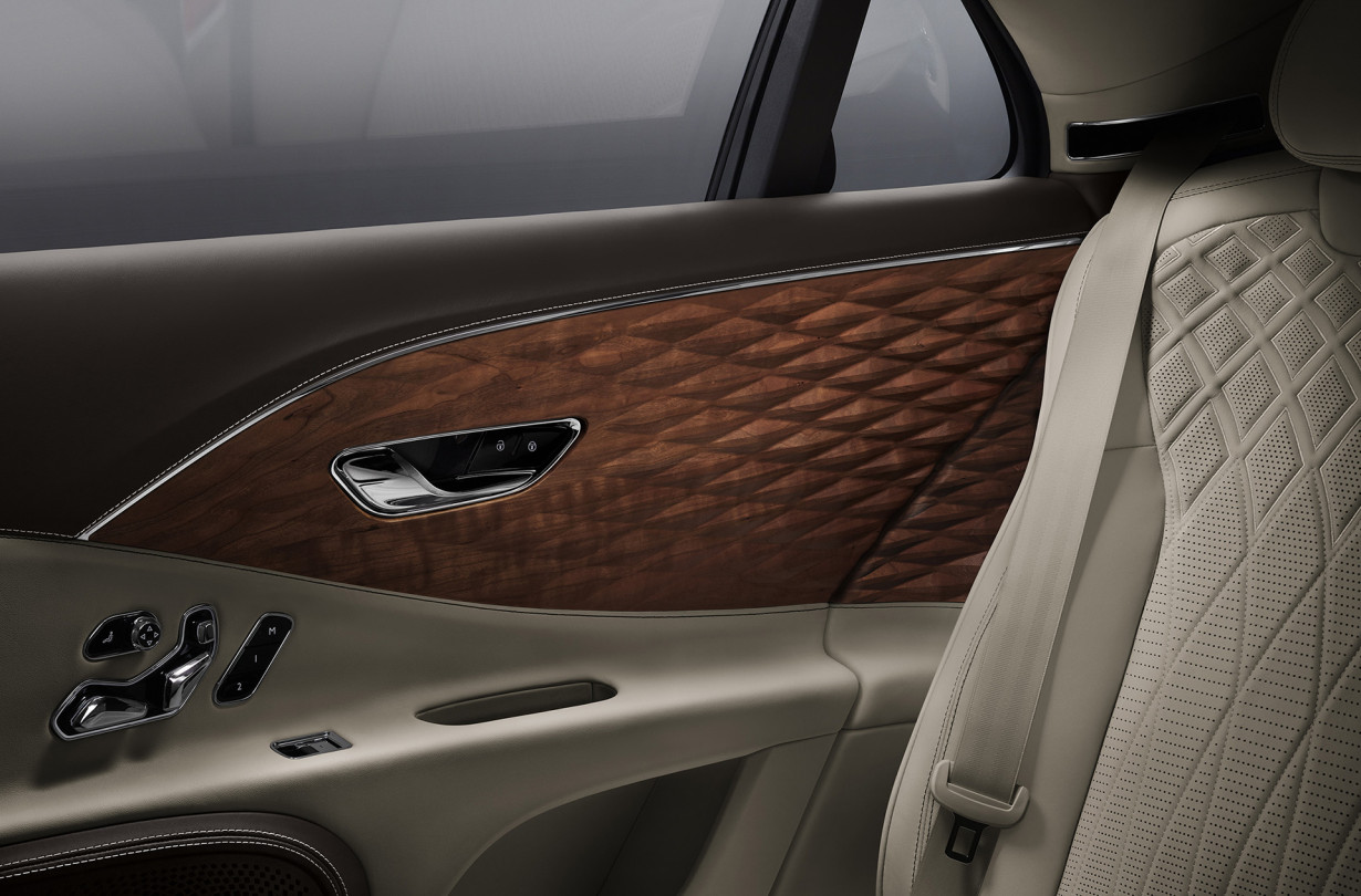 H Bentley παρουσιάζει ένα πρωτοποριακό, τρισδιάστατο ξύλινο ένθετο πίσω πόρτας, στην ολοκαίνουργια Flying Spur. Η συγκεκριμένη υλοποίηση είναι η πρώτη στον κόσμο στην αυτοκινητοβιομηχανία - ένα εντυπωσιακό, μονοκόμματο κομμάτι ξύλου ειδικά κατεργασμένο, με τρισδιάστατο φινίρισμα που προσομοιάζει σε διαμάντια, 150 στο κάθε μπλοκ.