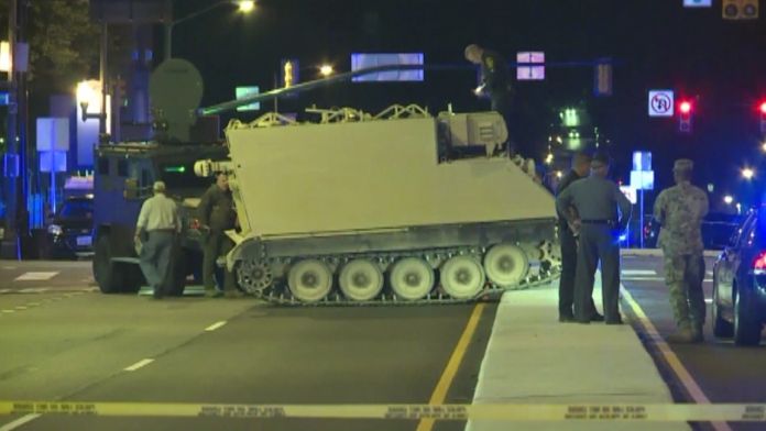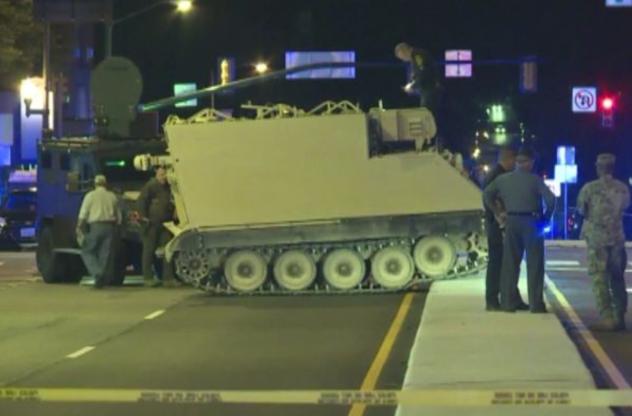 Το θωρακισμένο όχημα εκλάπη από τη βάση της Εθνοφυλακής στο Blackstone και όπως αναφέρθηκε δεν έφερε οπλισμό.