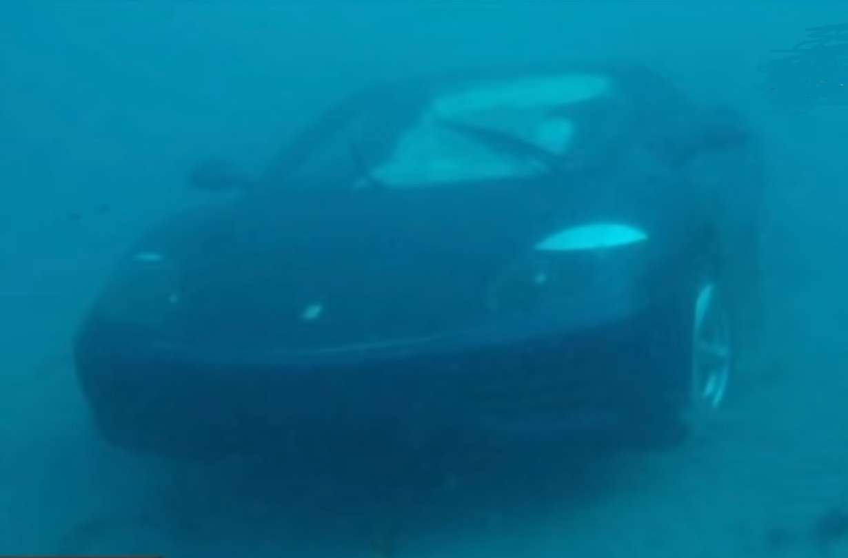 Τη Ferrari ανέσυραν δύτες από 10 μέτρα βάθος, δένοντάς της μπαλόνια για να πλέει. Τη ρυμούλκησαν στην ακτή και την έβγαλαν από γλίστρα, όμως ακόμη κι αν φτιαχτεί, είναι αμφίβολο αν ο ιδιοκτήτης της θα έχει την πνευματική διαύγεια για να την οδηγεί στους δρόμους…