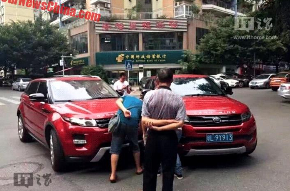 Εκδίκηση! Ένα Range Rover Evoque έπεσε πάνω στον κινεζικό κλώνο του, το Landwind X7, σε ένα ήσσονος ζημιάς τρακάρισμα, στην Κίνα.