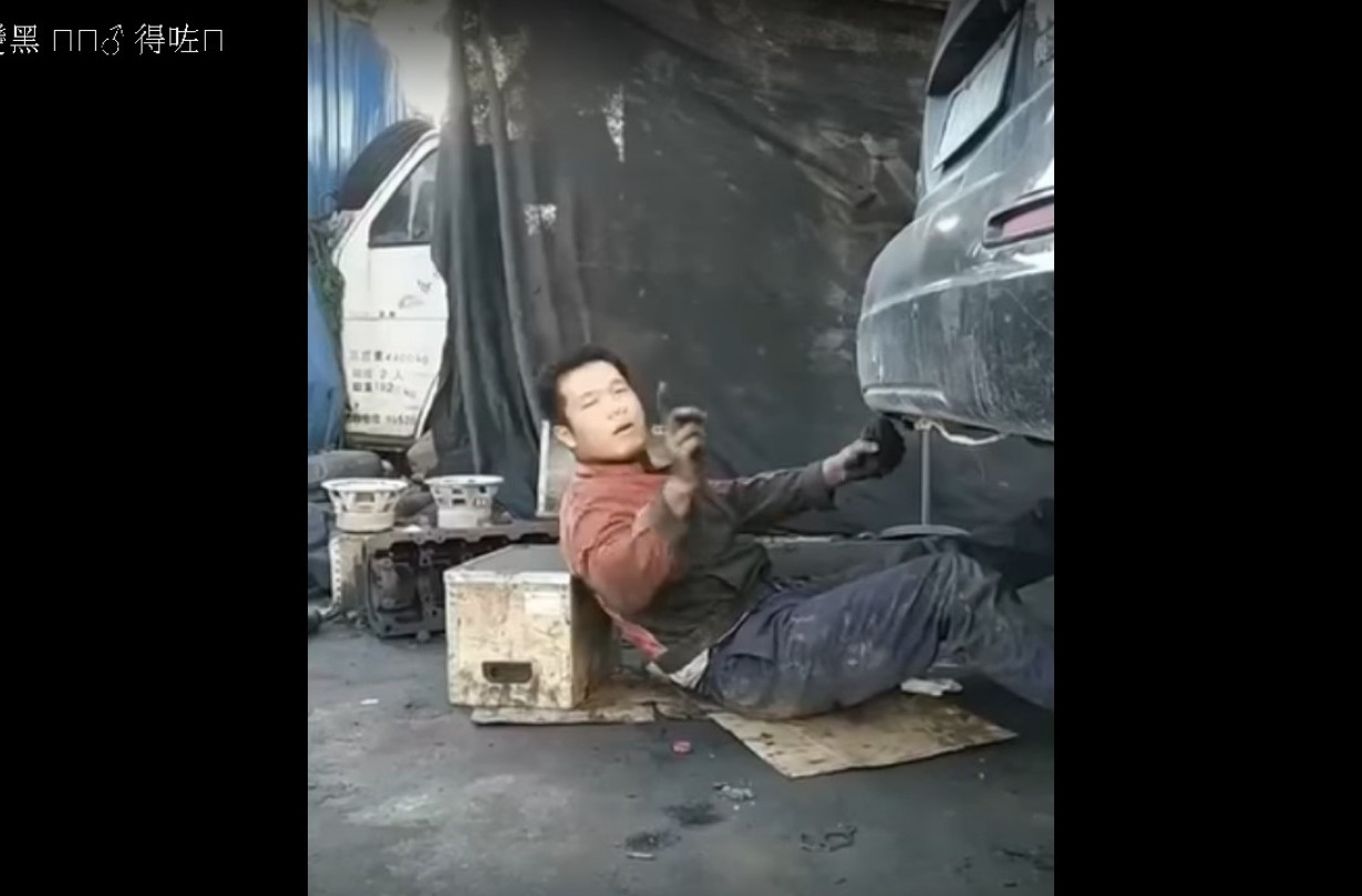 Αυτή τη σκηνή τη βλέπουμε στα καρτούν, αλλά εδώ είναι πραγματική. Και ο μηχανικός φαίνεται να είναι το θύμα μιας φάρσας.