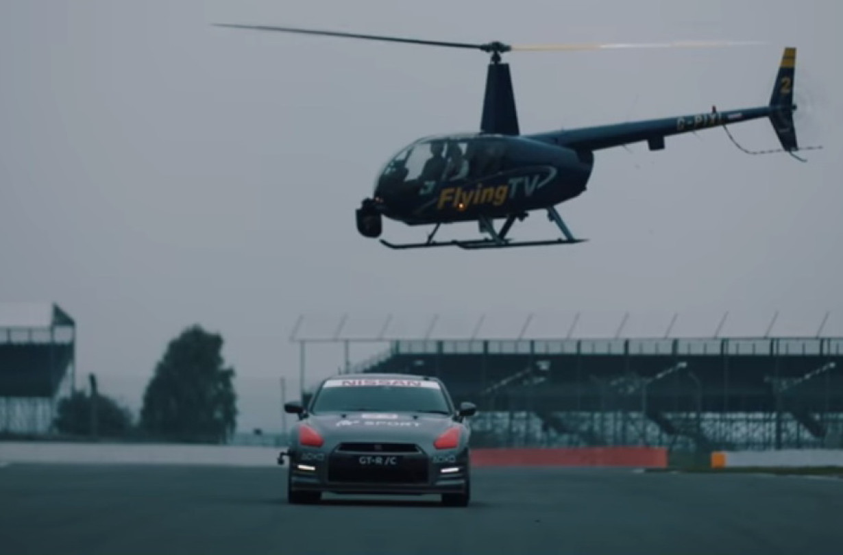 Έβαλε τον νικητή της GT Academy και επαγγελματία οδηγό αγώνων της Nismo, Jann Mardenborough, να οδηγήσει στην πίστα ένα κανονικό, αλλά τηλεκατευθυνόμενο Nissan GT-R, από ψηλά, καθισμένος μέσα σε ένα ελικόπτερο.