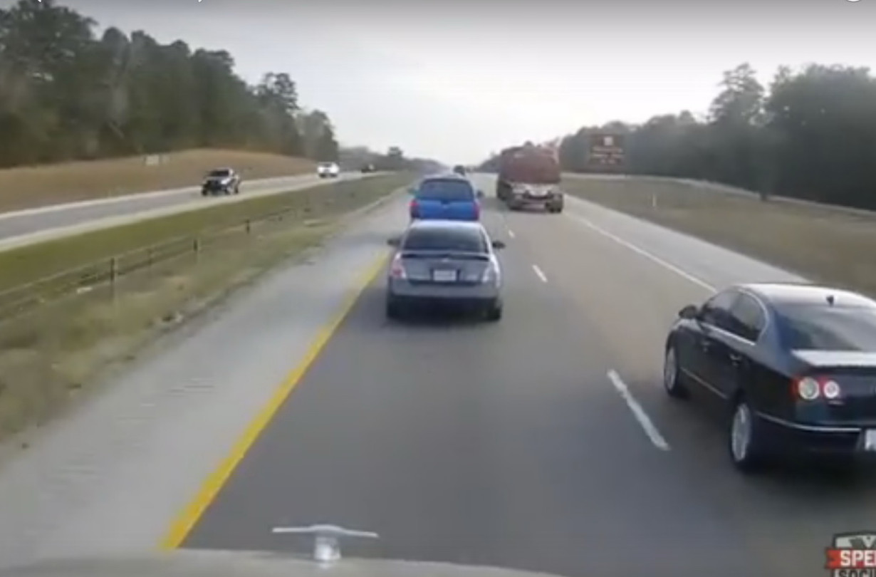 Έτσι λοιπόν γίνεται και στην περίπτωση του video, όπου το ένα VW Passat προσπαθεί να παρεμβληθεί μεταξύ ενός φορτηγού κι ενός αυτοκινήτου που πριν από μερικές στιγμές είχε κάνει το ίδιο. Τα πράγματα όμως είναι ακόμη πιο δύσκολα καθώς το Passat πλησιάζει γοργά κι ένα φορτηγό που κινείται με χαμηλότερη ταχύτητα στη δεξιά λωρίδα.ΔΕΙ