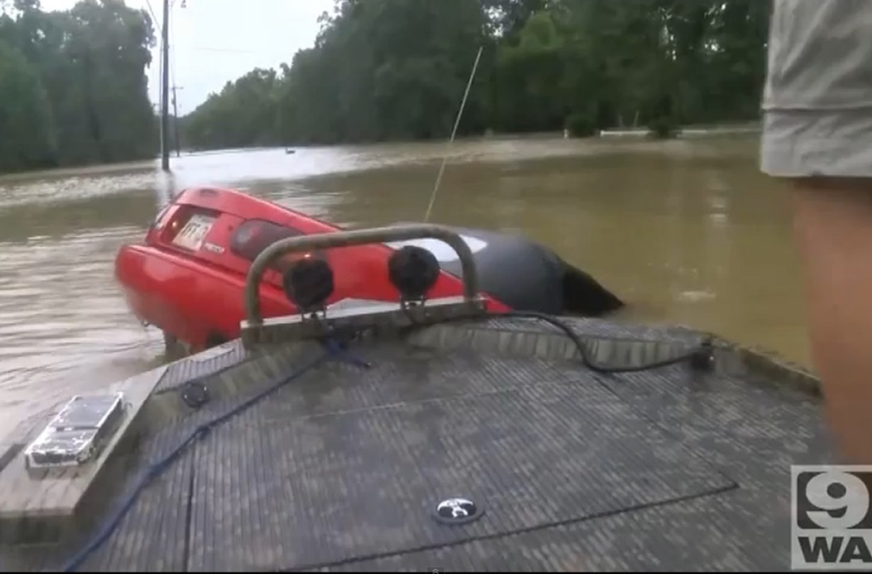 Εδώ θα δούμε μία από αυτές τις διασώσεις, που έγινε στην πρωτεύουσα της Πολιτείας, την Baton Rouge. Μια γυναίκα οδηγός παγιδεύτηκε μέσα στο Mazda Miata της καθώς ανέβαινε η στάθμη των νερών.