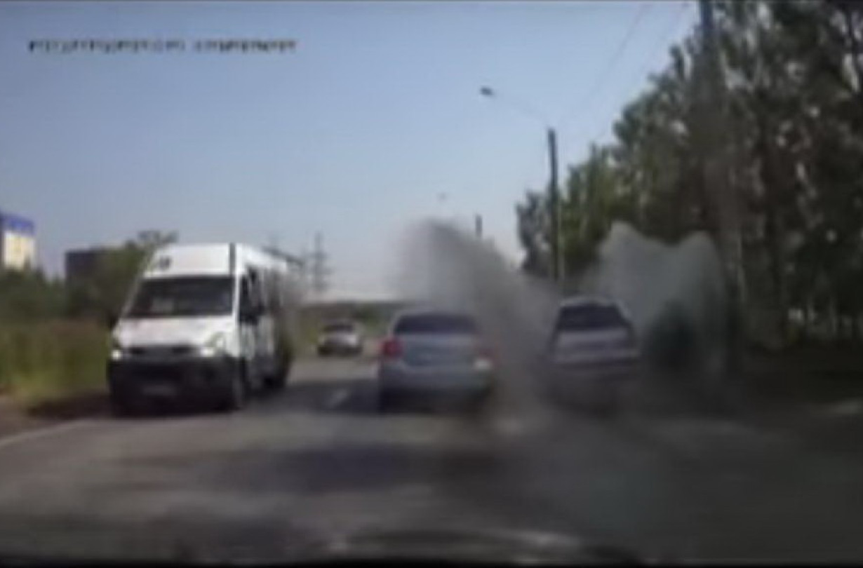Έχοντας προσέξει ότι ο οδηγός του Avensis είχε τα παράθυρα ανοιχτά και ότι ο δρόμος στην άκρη ήταν όλο νερολακκούβες, προσπέρασε το μπροστινό τους αυτοκίνητο και τον περίμενε δεξιά. Μόλις το Avensis έφτασε δίπλα του, επιτάχυνε μέσα στα νερά κάνοντας τον «αντίπαλο» λούτσα!