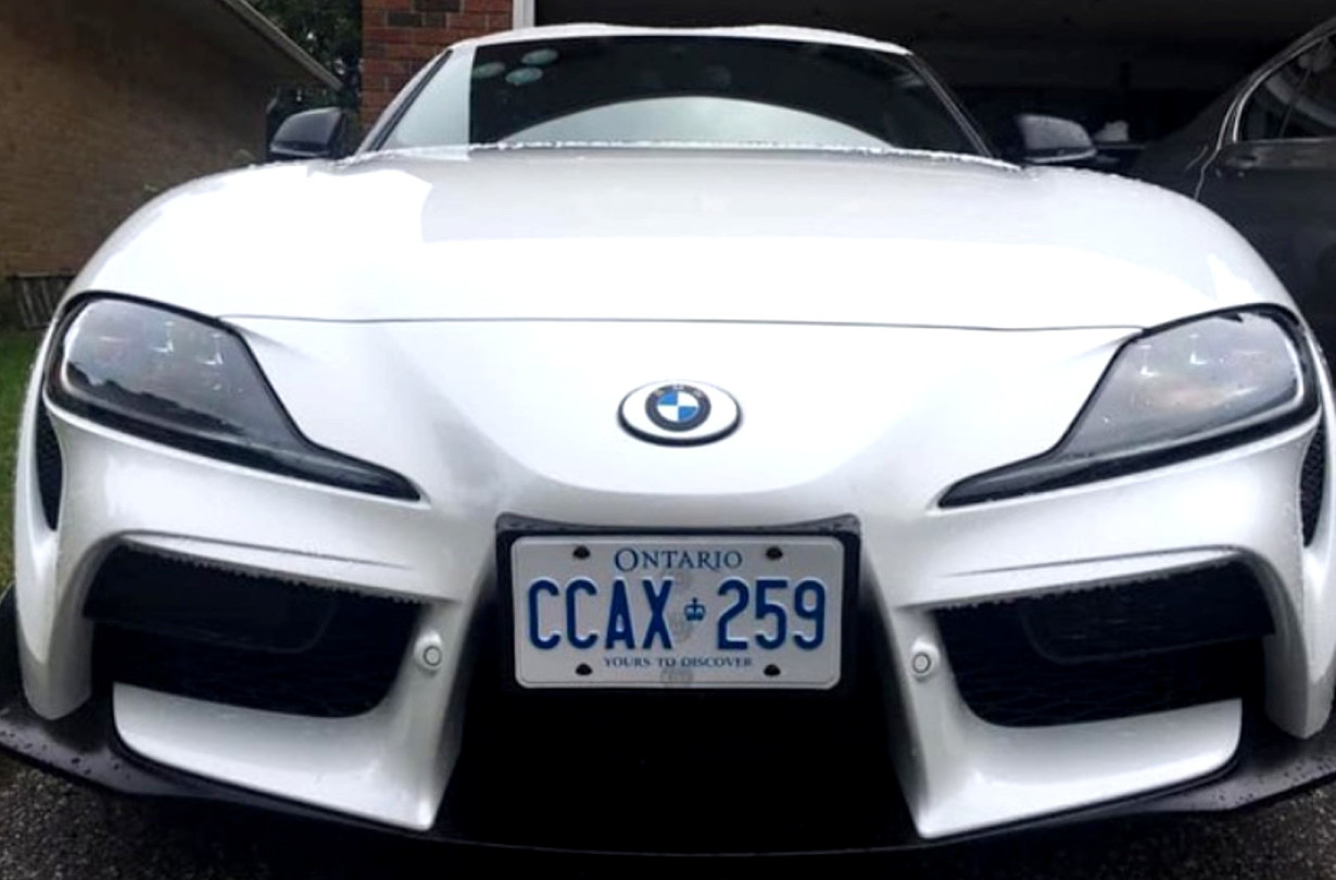 Το κανάλι MotorPress.ca που λειτουργεί στον Καναδά από τους Έλληνες Jason Ladopoulos και Steve Giftakis, άλλαξε τα εμβλήματα μιας δημοσιογραφικής Toyota Supra με αυτά της BMW, ως μια χιουμοριστική αναφορά στην προέλευση των μηχανικών μερών του πισωκίνητου σπορτσκαρ. Η εταιρεία Vinylmod.com ανέλαβε να προσαρμόσει το στρογγυλό έμβλημα της BMW με το οβάλ της Toyota και όπως βλέπουμε έκανε εξαιρετική δουλειά.