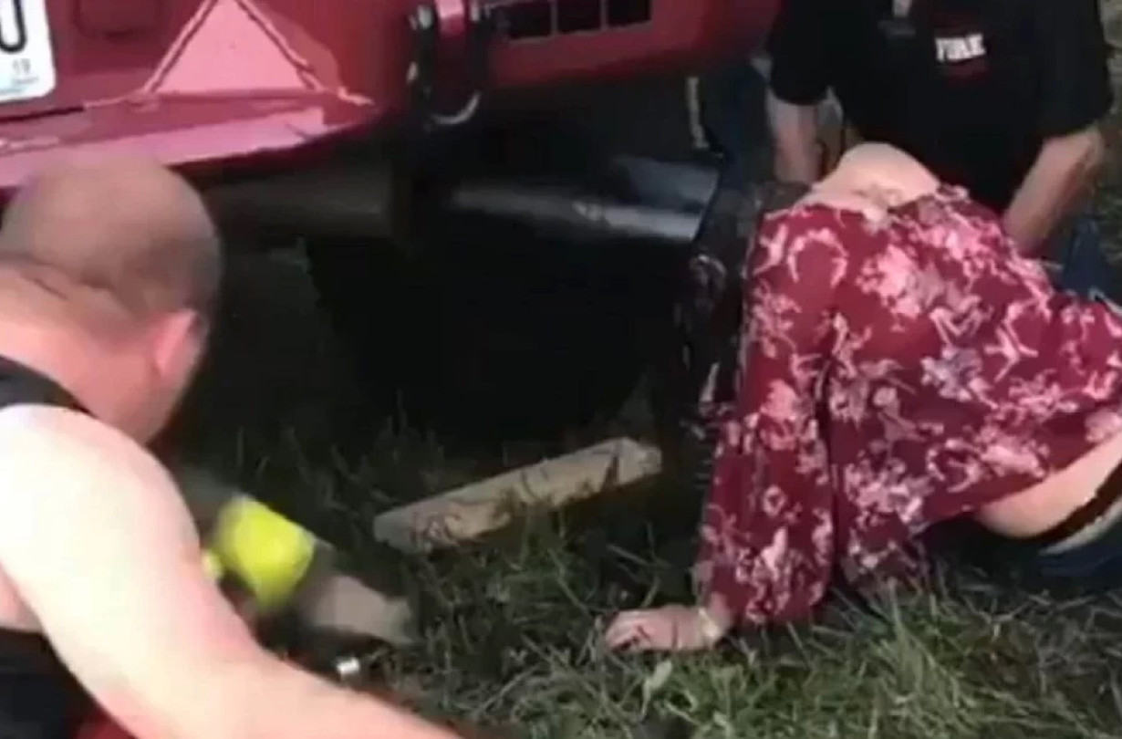 Όμως το κεφάλι της κοπέλας κόλλησε μέσα στην εξάτμιση και δεν μπορούσε να το βγάλει. «Ήμουνα κάπως μπερδεμένη επειδή δεν ήξερα τι συνέβαινε», εξήγησε μετά. «Δεν μπορούσα να δω τίποτε, αλλά είχα εμπιστοσύνη σε όσους ήταν γύρω μου ξέροντας ότι θα με έβγαζαν με ασφάλεια».