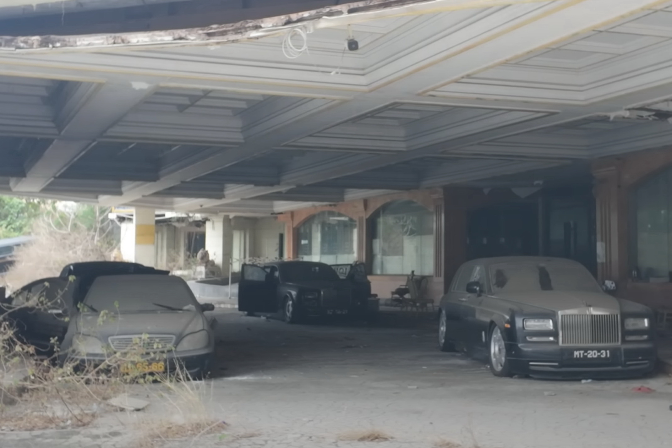 Το πιο εντυπωσιακό όμως θέαμα περίμενε λίγο πιο πέρα, εμπρός στην κεντρική είσοδο: Τρεις Rolls-Royce Phantom παρατημένες, σε κακή κατάσταση, δίπλα σε μια παλιότερη Mercedes-Benz S-Class. Στο υπόγειο πάρκινγκ οι YouTuber ανακάλυψαν ακόμα περισσότερα αυτοκίνητα -μια Dodge Charger, ένα smart forfour και άλλo ένα Audi A8L.