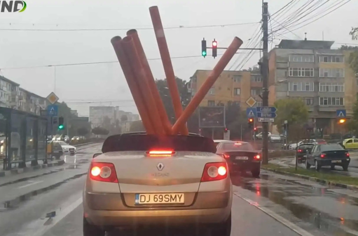 O Ρουμάνος οδηγός βρήκε έναν πρωτότυπο και πολύ επικίνδυνο τρόπο να μεταφέρει σωλήνες PVC.