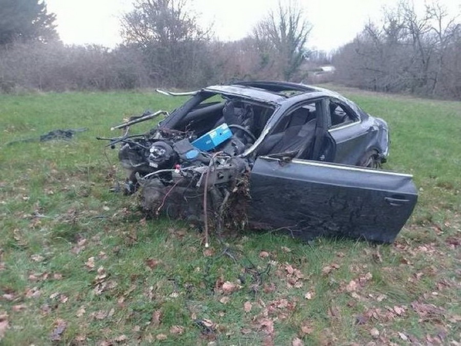 Αυτή ήταν η εικόνα που αντίκρισαν πυροσβέστες και χωροφύλακες στις 14 Φεβρουαρίου, γύρω στις 16:30, σύμφωνα με το ρεπορτάζ της Sud-Ouest. Ο οδηγός, άνδρας περίπου 30 ετών, βρέθηκε κι εκείνος στο χωράφι, έχοντας υποστεί σοβαρό τραυματισμό στο χέρι. Είχε εκτιναχθεί έξω από το αυτοκίνητο και μεταφέρθηκε άμεσα στο κοντινότερο νοσοκομείο.