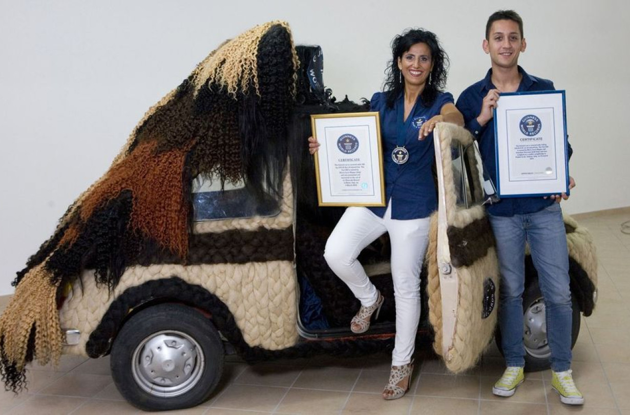 Το Fiat 500 μιας ιταλίδας στιλίστριας είναι ντυμένο με 120 kg ανθρώπινων μαλλιών, κατακτώντας και το αντίστοιχο Guinness World Record.