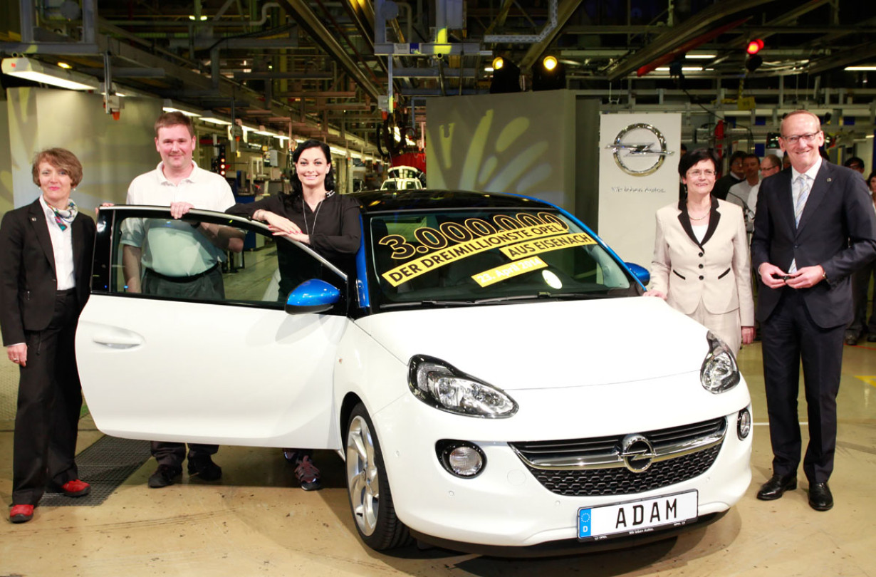 Τρία εκατομμύρια αυτοκίνητα έχουν κατασκευαστεί στο Eisenach, ορόσημο που γιόρτασε το εργοστάσιο της Adam Opel AG στη Θουριγγία. Πολλοί εξέχοντες προσκεκλημένοι, ανάμεσα στους οποίους η Πρωθυπουργός Christine Lieberknecht παρακολούθησαν την εκδήλωση.