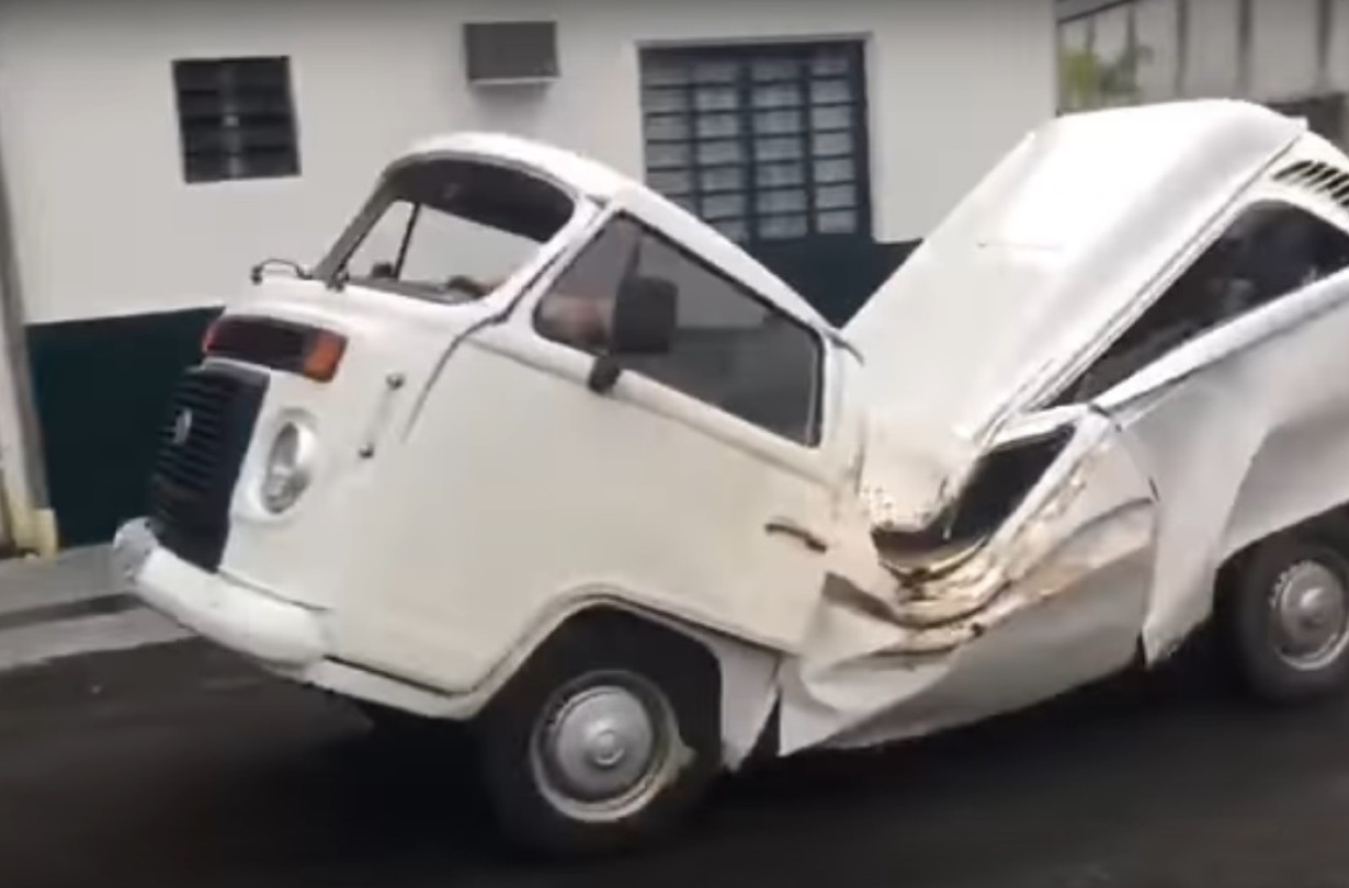 Μια θύελλα στο Rio Negrinho της Santa Catarina, στη Βραζιλία, έριξε κάτω κάμποσα μεγάλα δέντρα. Ένα από αυτά έπεσε πάνω στο συγκεκριμένο το Volkswagen Kombi, κόβοντάς το σχεδόν στα δύο.
