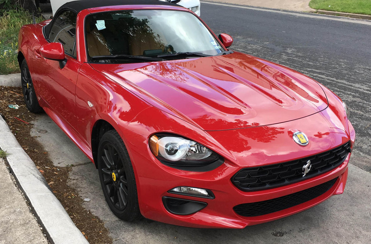 Έτσι, σε συνδυασμό με το κόκκινο χρώμα του αμαξώματος και το καφετί δερμάτινο εσωτερικό, «ξεχνιέται» και νομίζει ότι κυκλοφορεί με κάποιο μοντέλο από το Maranello. Εάν όμως αναλογιστούμε ότι το ιταλικό ρόουντστερ βασίζεται στο ιαπωνικό Mazda MX-5 ή ότι υπάρχει βελτιωμένη εκδοχή του μοντέλου σε μορφή Abarth, τότε πραγματικά δεν μπορούμε να σκεφτούμε τι είχε στο μυαλό του ο συγκεκριμένος άνθρωπος.