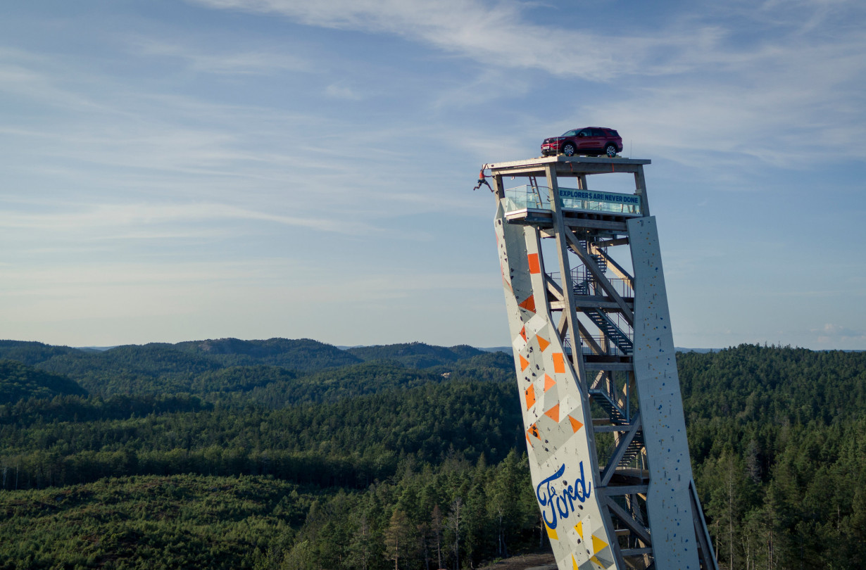 Εμπνευσμένη από το μότο «οι εξερευνητές δεν σταματούν ποτέ» που ενσαρκώνει το εξηλεκτρισμένο, παντός εδάφους, επταθέσιο, περιπετειώδες SUV, η Ford προσκάλεσε αναρριχητές από τη Νορβηγία να ανέβουν στον πύργο αναρρίχησης OVER ύψους 47 m στις 31 Ιουλίου, και να πετύχουν τον ταχύτερο χρόνο ώστε να κερδίσουν μία δωρεάν, διετή σύμβαση μίσθωσης του αυτοκινήτου.
